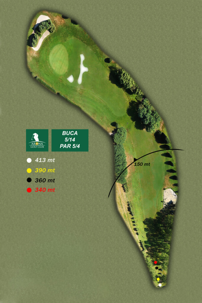 E’ Par 5 nel “primo giro”, cioè nelle prime 9 buche e Par 4 (Handicap 1) nelle seconde 9.